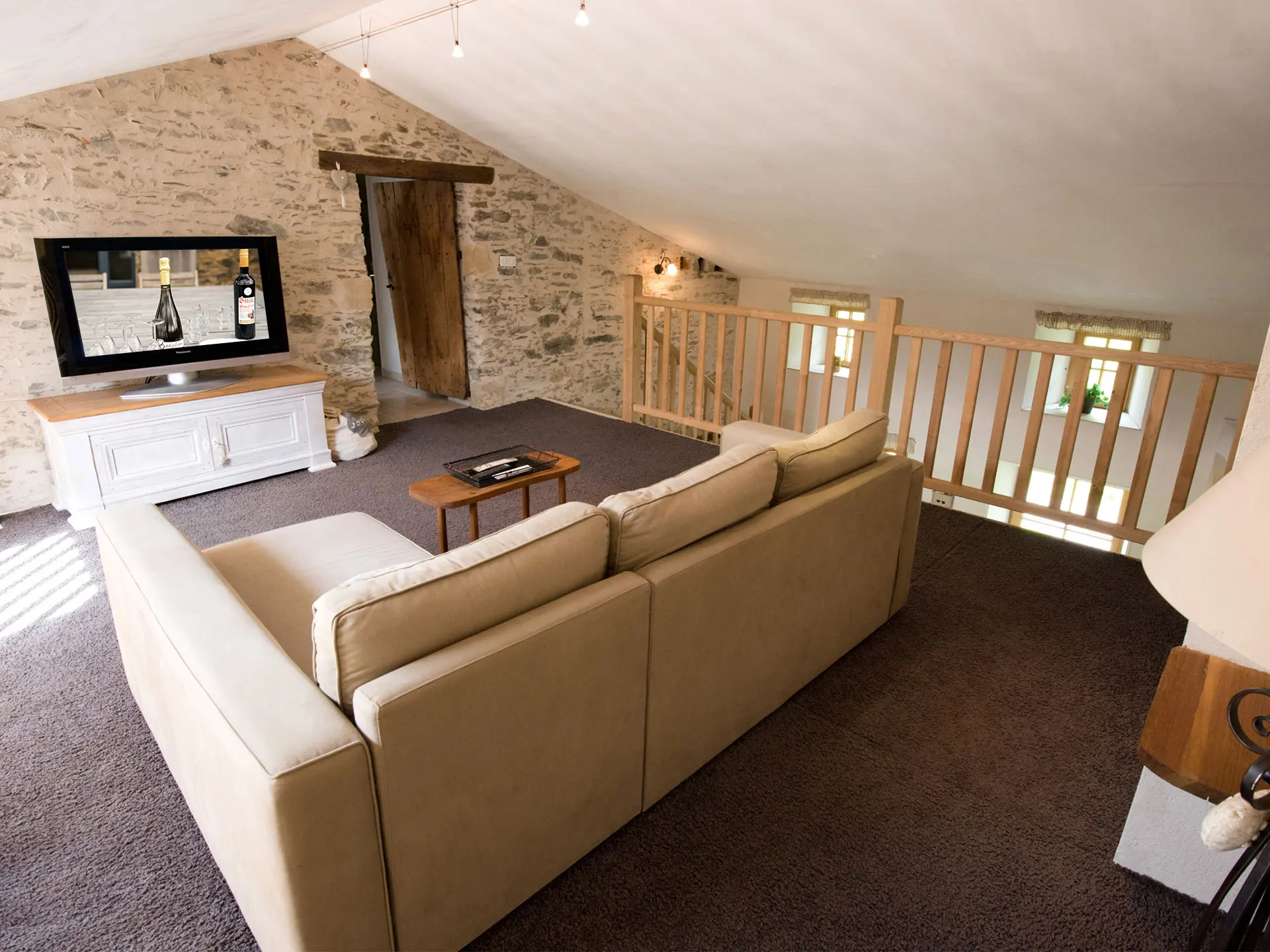 - Salon TV-DVD-bibliothèque sur mezzanine de 22 m²