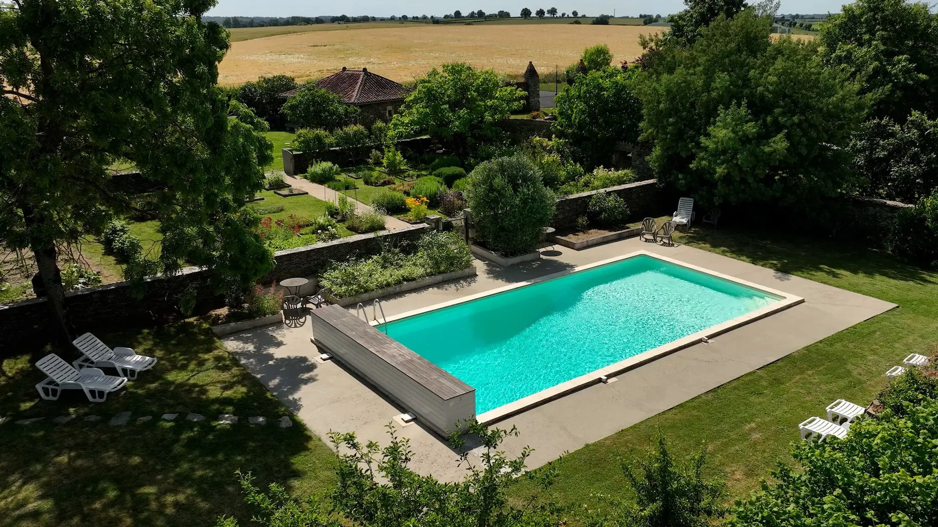 La piscine de 6 m x 12 m, nichée dans un écrin protecteur de vieux murs, est une véritable ode aux vacances. Grâce à son accès sécurisé par un portillon à double action et ses profondeurs variées, elle permet aux petits comme aux grands de partager des moments de complicité aquatique. Après la baignade, laissez-vous tenter par une pause contemplative sur les transats disposés aux abords du bassin, parfaits pour savourer la douceur du soleil vendéen.